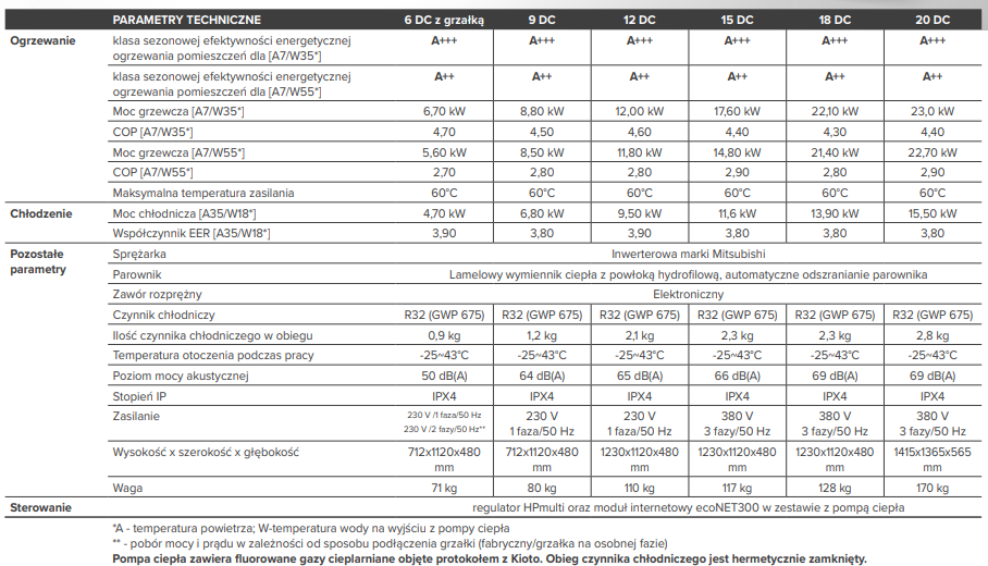 - Sprężarka inwerterowa Panasonic z technologią EVI